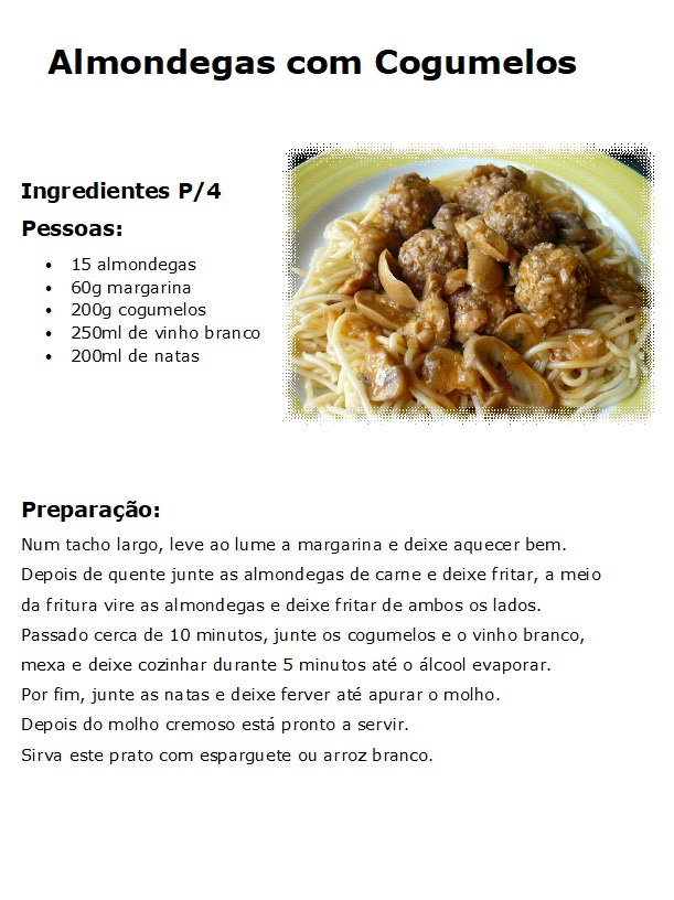 Almôndegas com Cogumelos