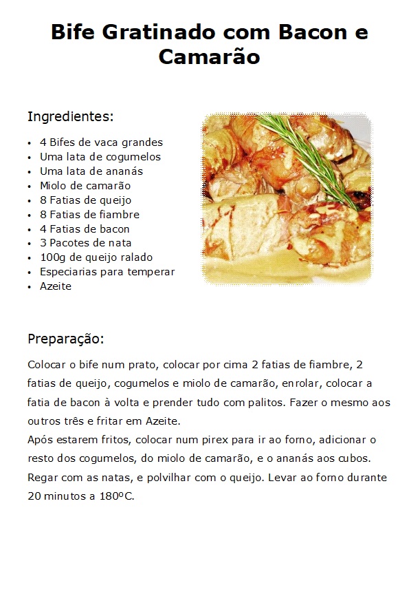 Bife Gratinado com Bacon e Camarão