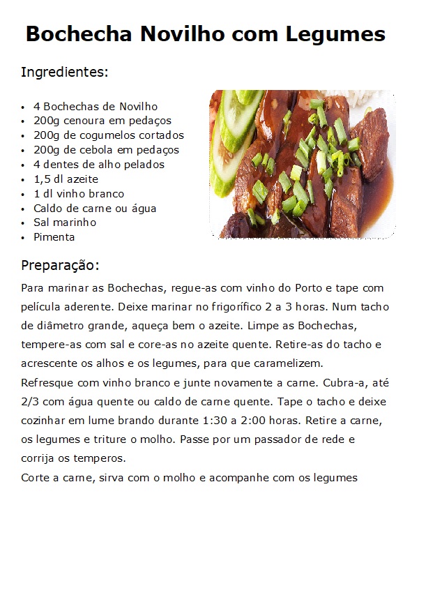 Bochecha Novilho com Legumes