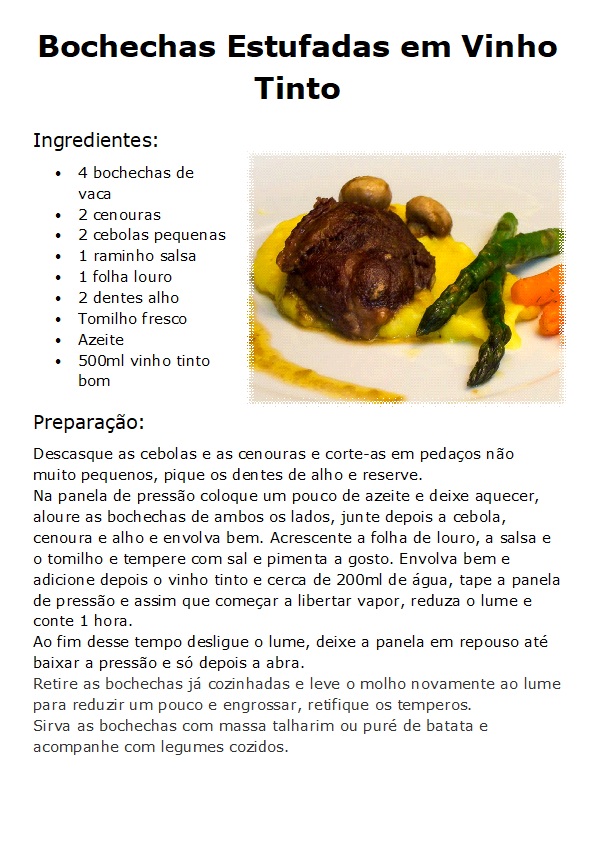 Bochechas Estufadas em Vinho Tinto