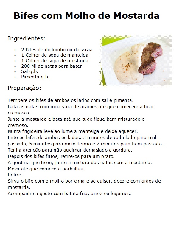 Bifes com Molho de Mostarda
