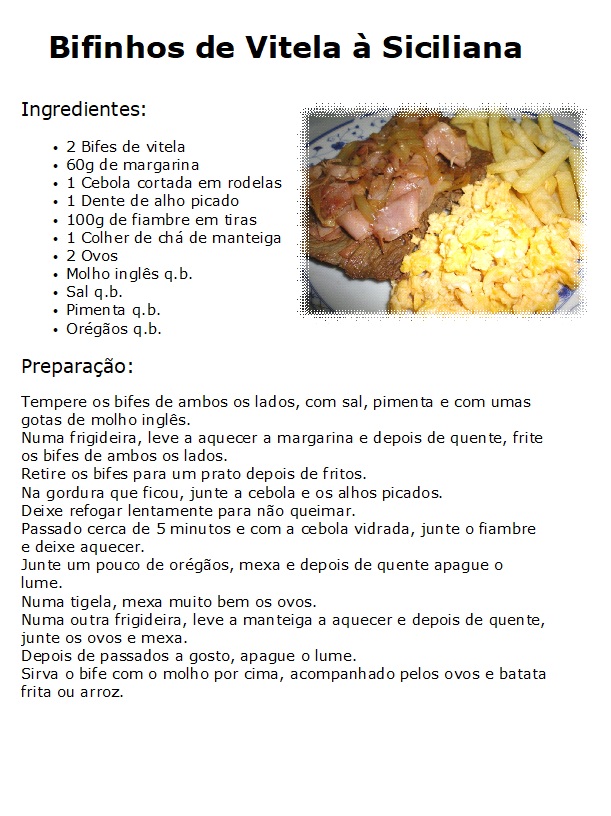 Bifinhos de Vitela à Siciliana