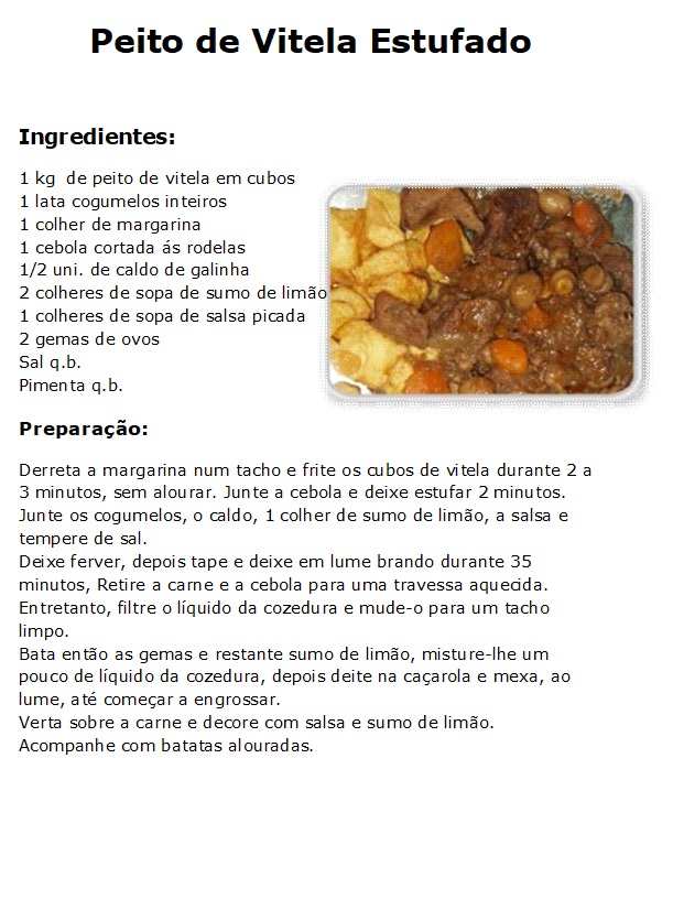 Peito de Vitela Estufado